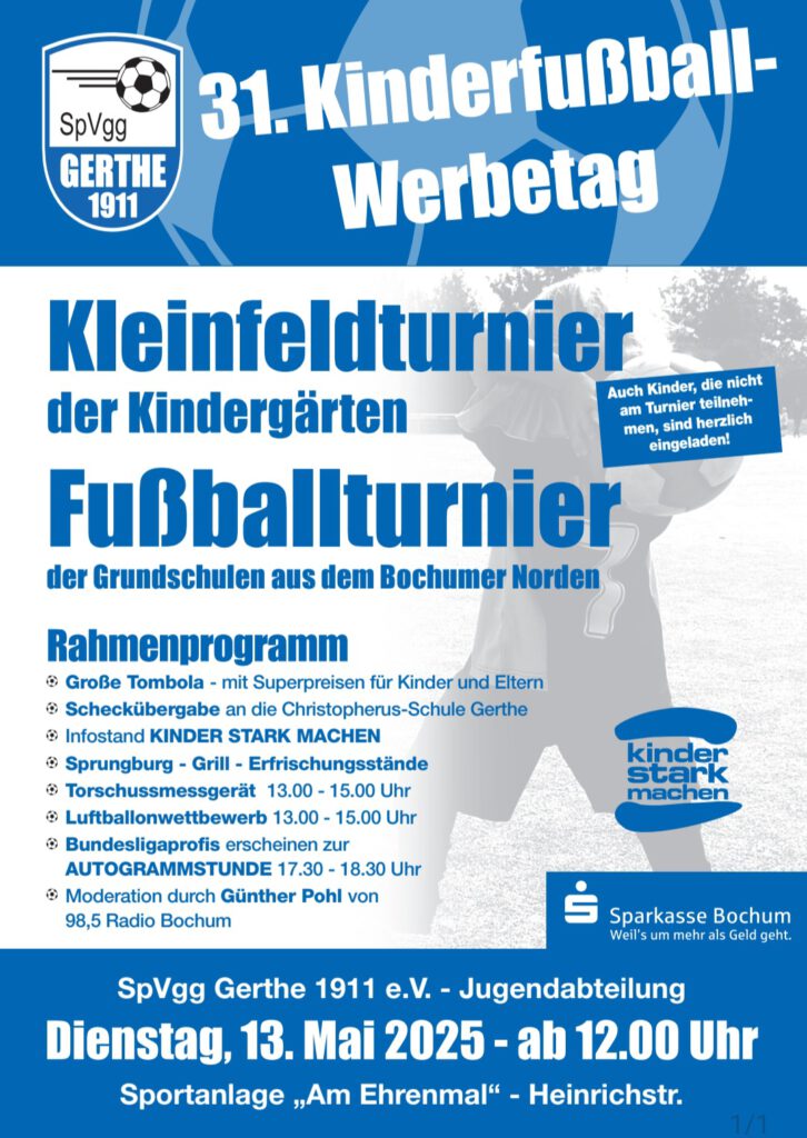Seit 1995 führt die SpVgg Gerthe 1911 e.V. den traditionellen Kinderfußballwerbetag im Bochumer Norden durch!