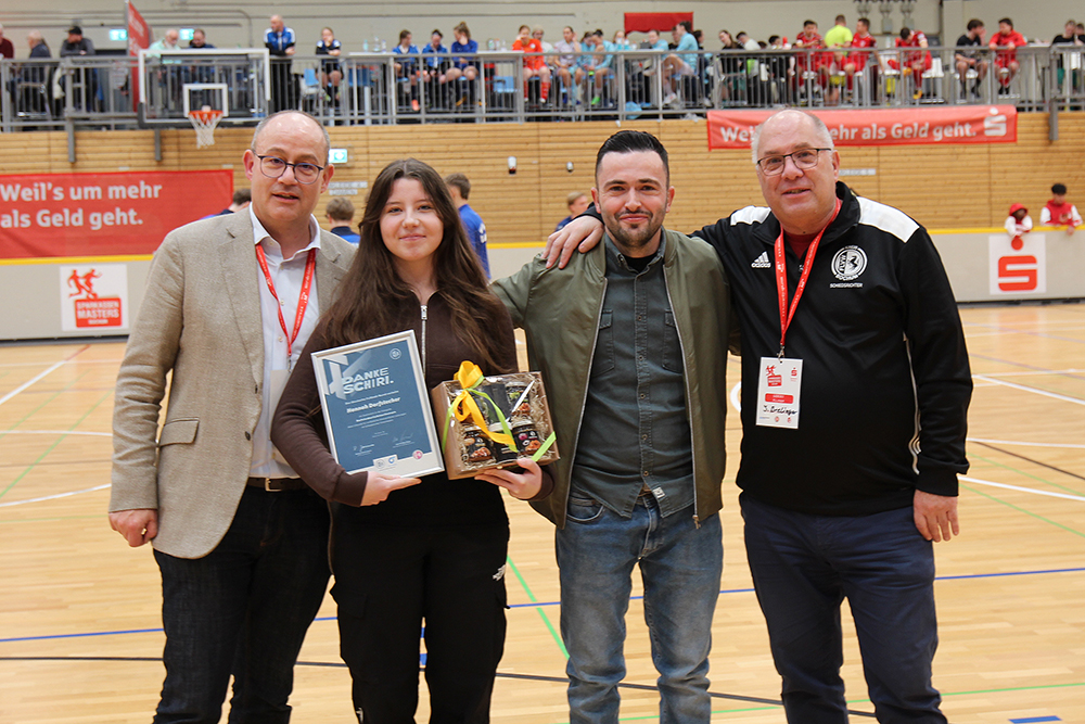 Unsere Schiedsrichterin Hannah Dorfstecher wurde im Rahmen der SparkassenMasters 2026 bei der Aktion „Danke Schiri“ vom Deutschen Fußball-Bund als Gewinnerin in der Kategorie Schiedsrichterinnen ausgezeichnet.